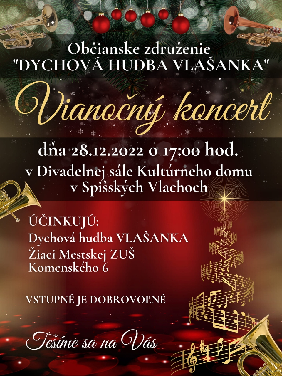 Vianočný koncert - Dychová hudba Vlašanka dňa 28.12.2022