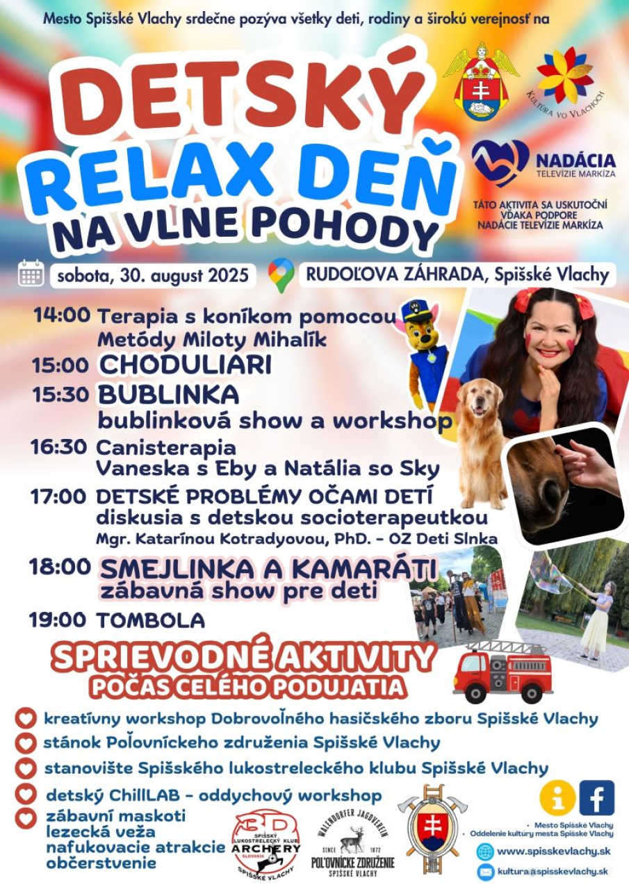 Srdečne Vás pozývame na výnimočné podujatie pre deti, rodiny a verejnosť, ktoré sa uskutoční v sobotu, 30. augusta 2025, v Rudoľovej záhrade. Letné prázdniny sa síce chýlia ku koncu, ale my ich zakončíme vo veľkom štýle! Čaká nás deň plný relaxu, radosti a smiechu – špeciálne venovaný deťom a ich duševnej pohode.