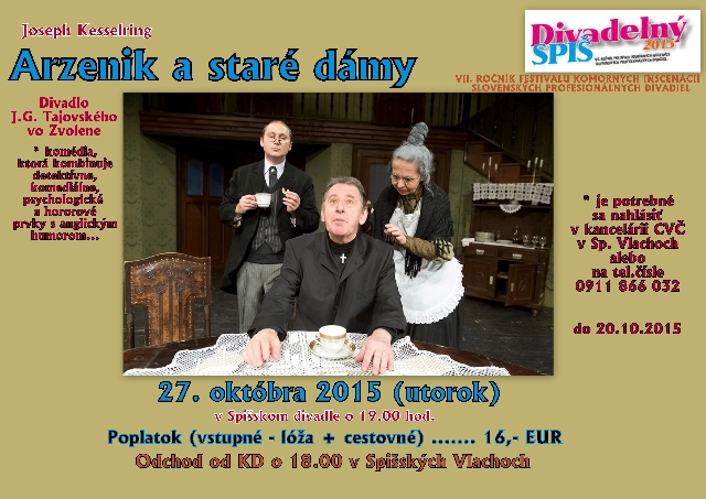 CVČ - Spišské divadlo: " Arzenik a staré dámy" dňa 27.10.2015
