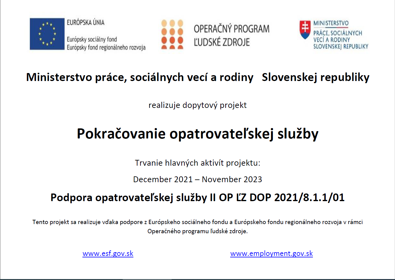 | Národný projekt "Podpora opatrovateľskej služby" |