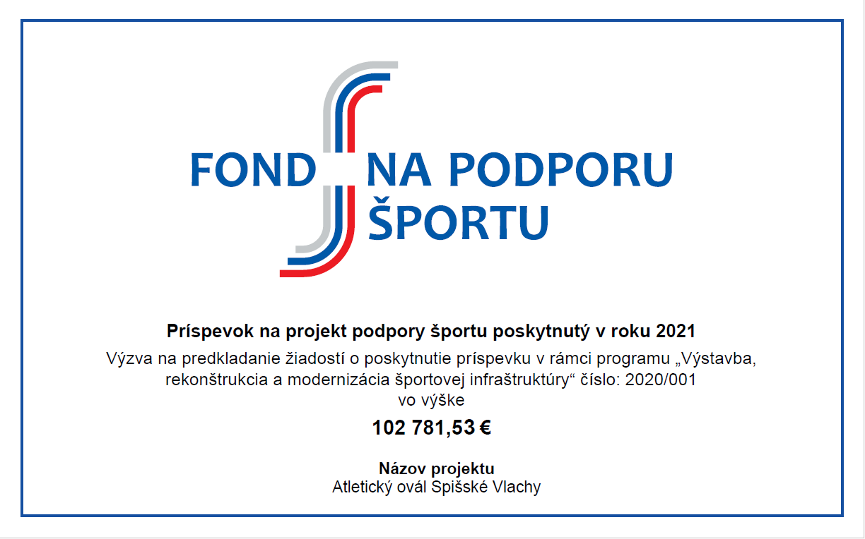 | Obnova fasády a strechy objektu futbalového klubu s športovom areáli mesta Spišské Vlachy | Modernizácia, rekonštrukcia a investície súvisiace so zlepšením kvality športovej infraštruktúry. Tento projekt finančne podporil Slovenský futbalový zväz. | 11000 | ||